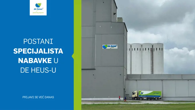 Da li imate timski duh i pobednički mentalitet? Da li ste proaktivni i tačni? Da li želite da se pridružite multinacionalnoj kompaniji koja ceni svoje zaposlene i ulaže u njihovo znanje da bi napredovala? De Heus Animal Nutrition je porodična, globalna kompanija za proizvodnju stočne hrane, sa sedištem u Edeu u Holandiji. U poslednjih 100 godina svog postojanja, izrastao je u vodećeg proizvođača u industriji hrane za životinje sa poslovnim jedinicama na 4 kontinenta (Evropa, Azija, Afrika i Južna Amerika). U našoj kompaniji u Šapcu imamo otvorenu poziciju Specijalista nabavke.